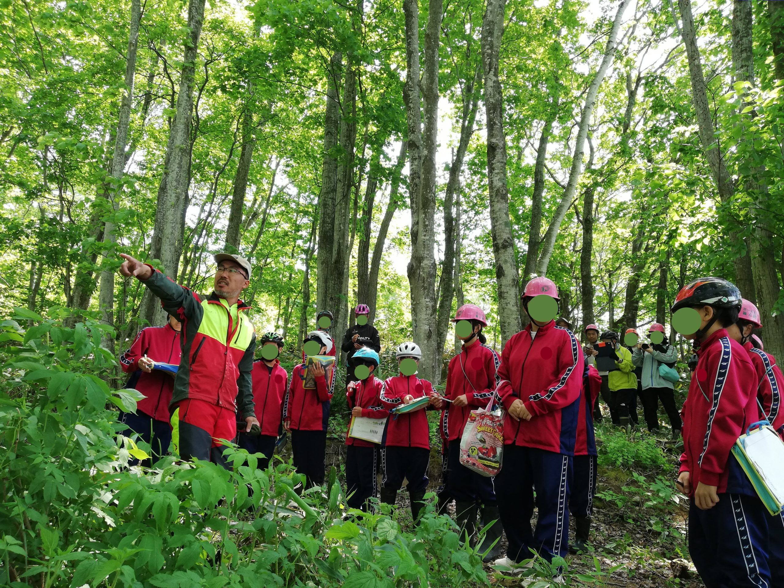 下川町の子どもたちにとって森林といえば、なじみ深いのは循環型森林経営でつくられた人工林ですが、より幅広い視点を持ってもらいたい!と考え、今年度は天然林の見学を追加しました。