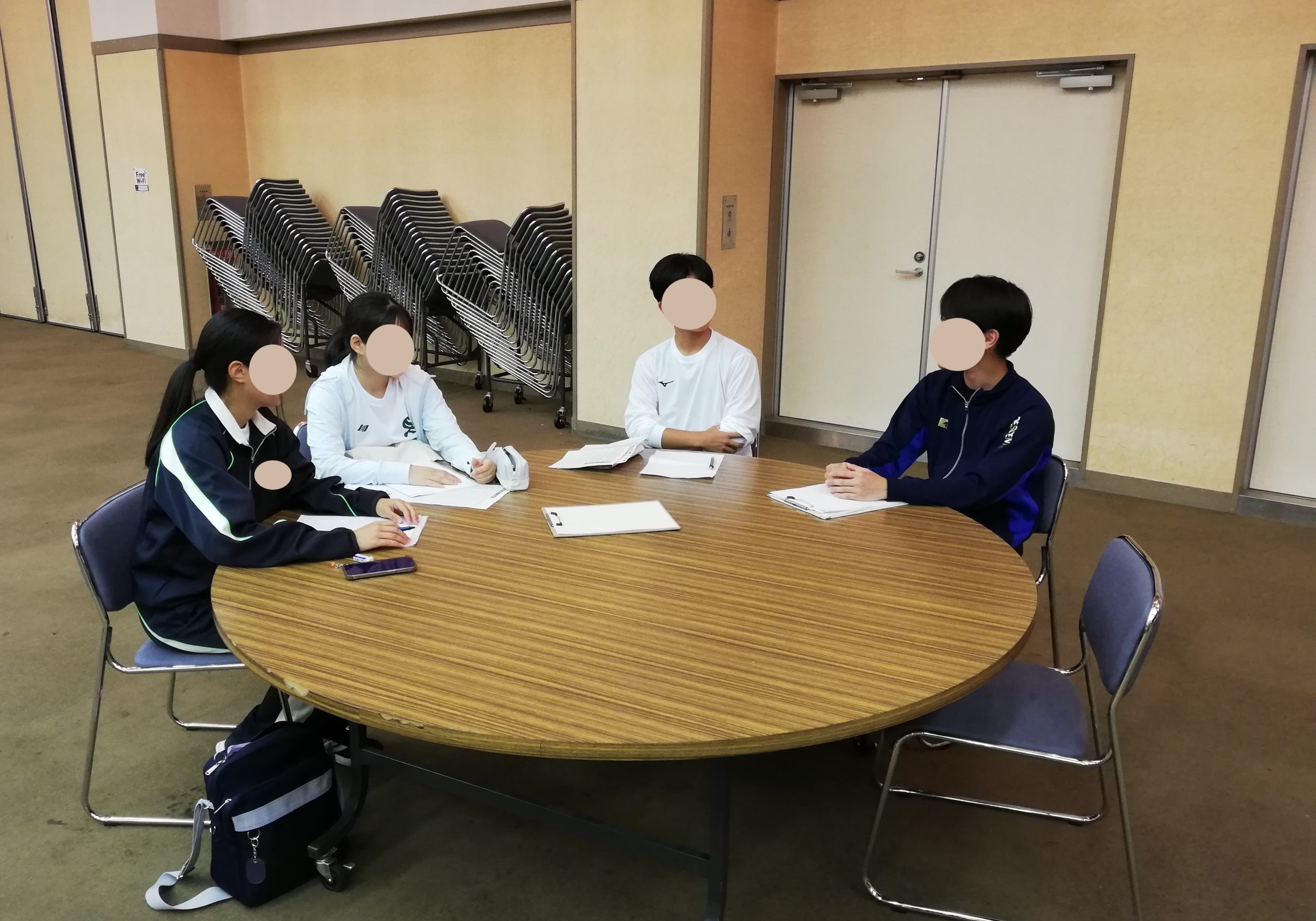 研修の最後には、学校をミックスしたグループに分かれ、1日の振り返りを行いました。
