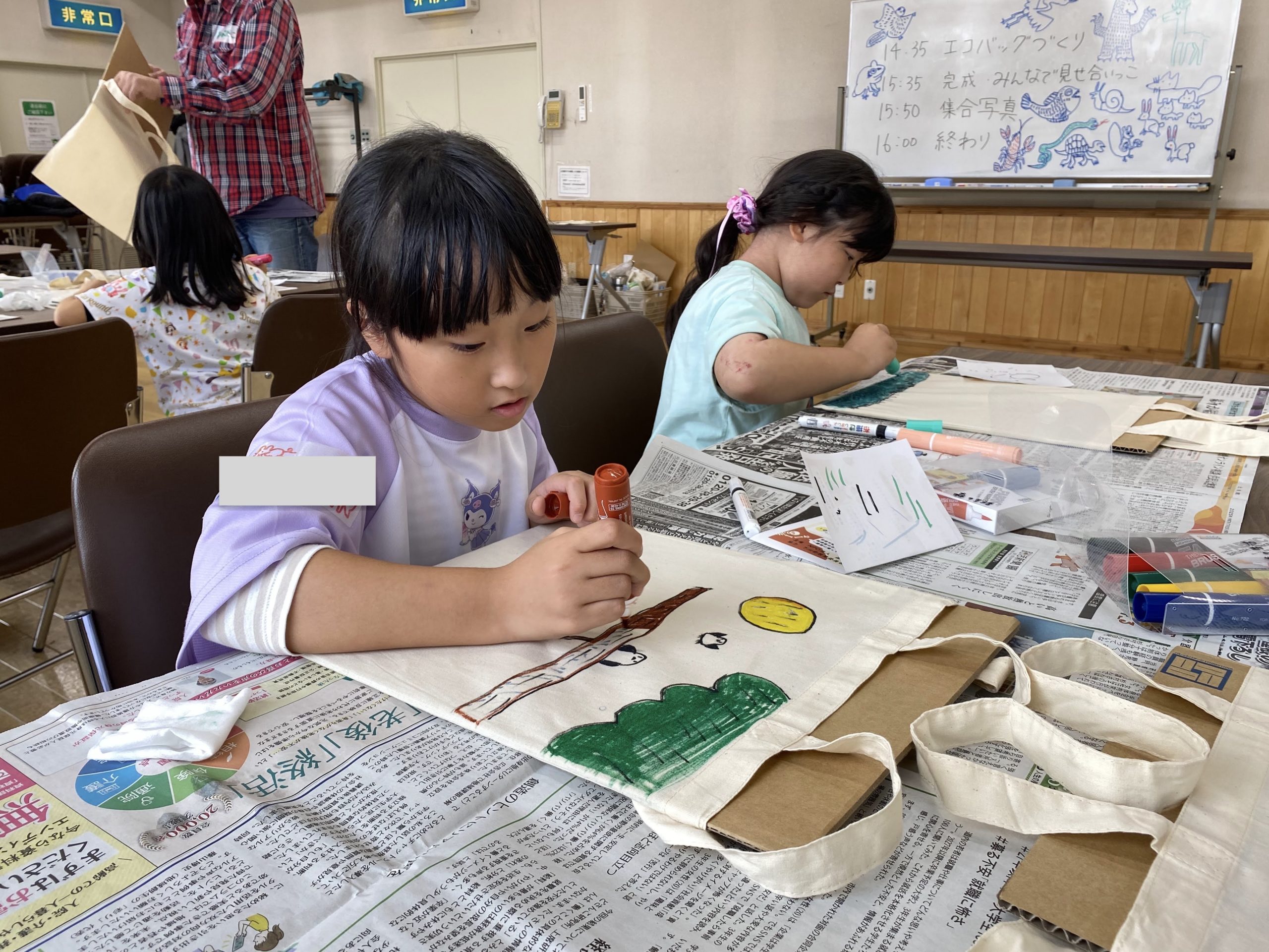 町内在住のイラストレーター・ogatakoさんを講師にお招きし、みんなでエコバッグを作りました。
