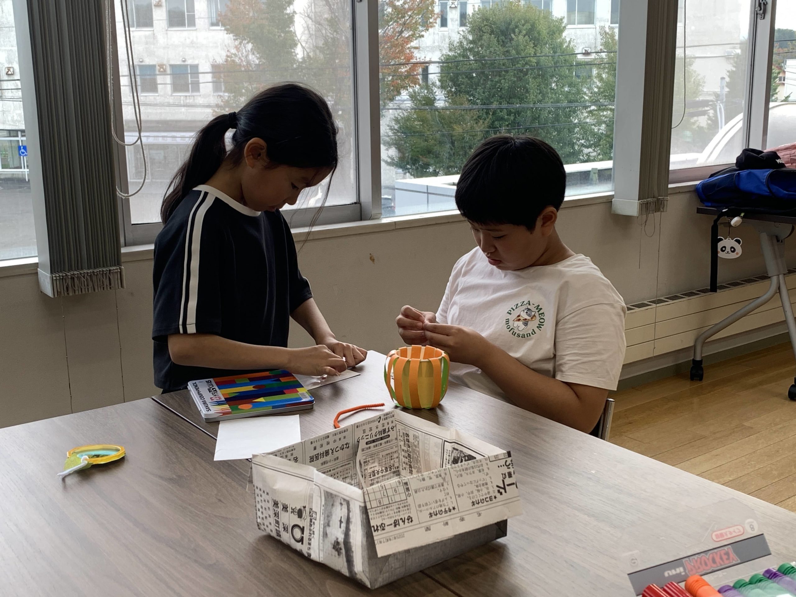 10月末に開催される町民文化祭へ向けて、自由工作をしました。