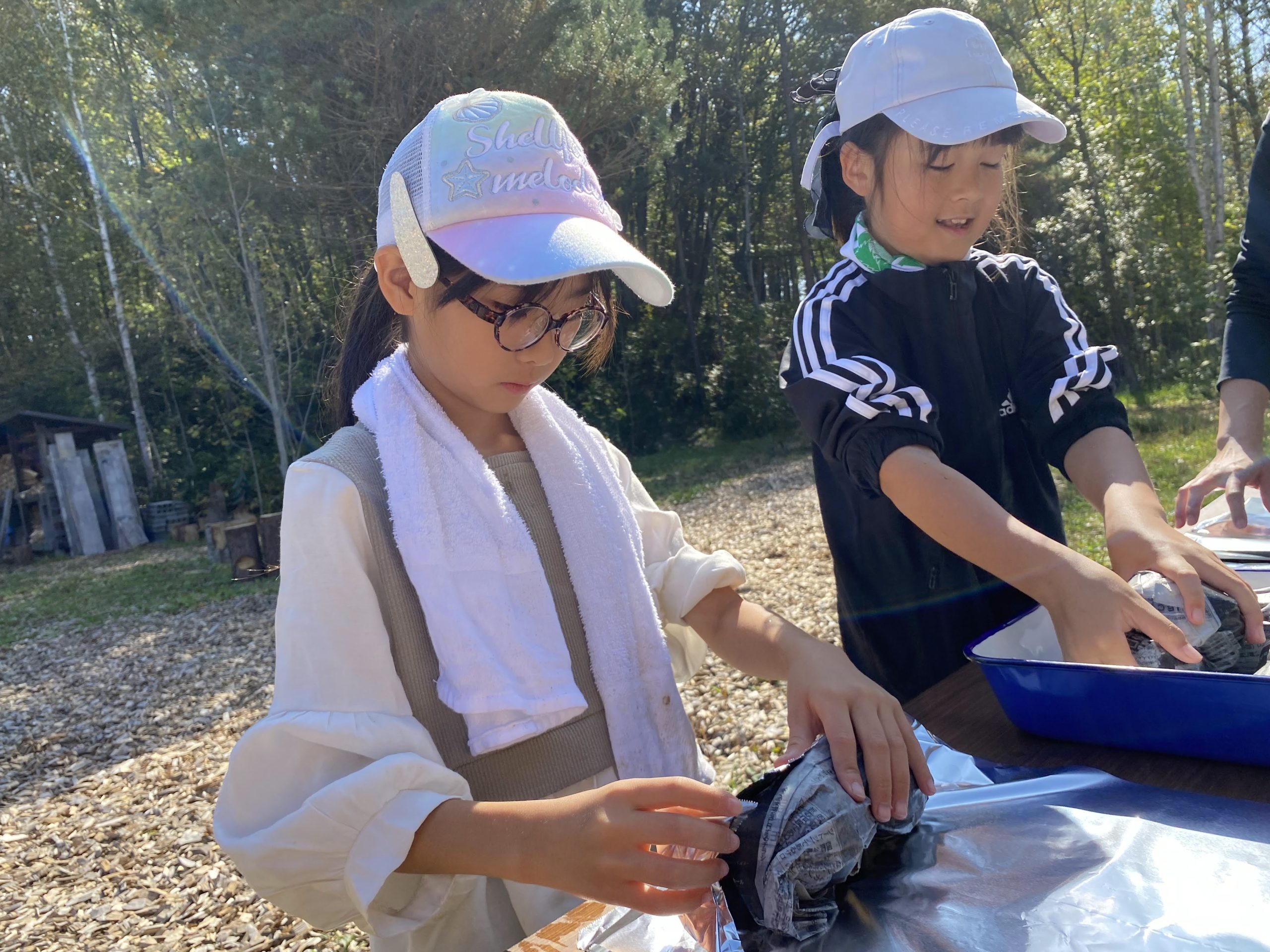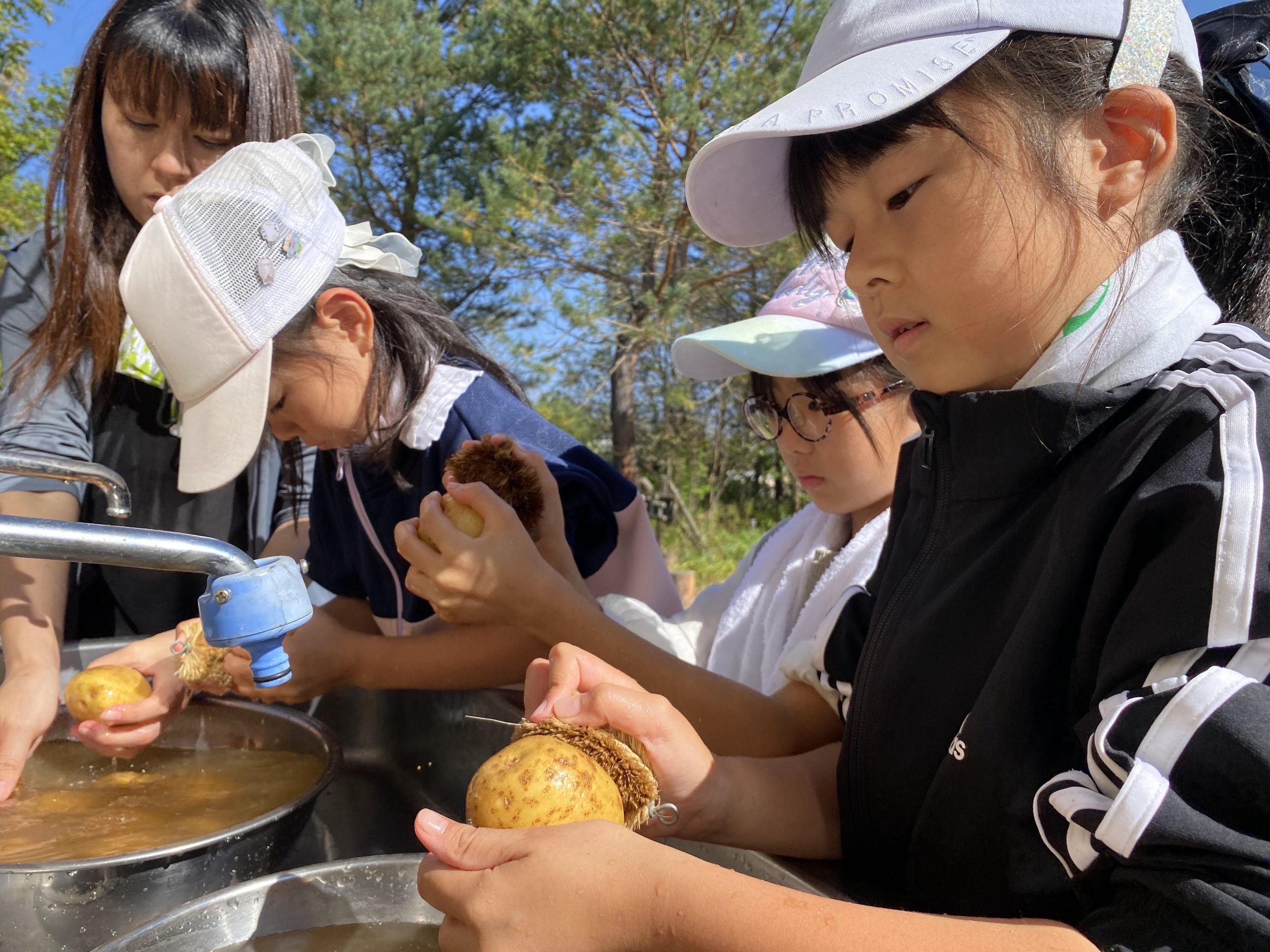 いも準備班は人数が少なかったので、一緒に参加していた保護者の方に手伝ってもらいました。