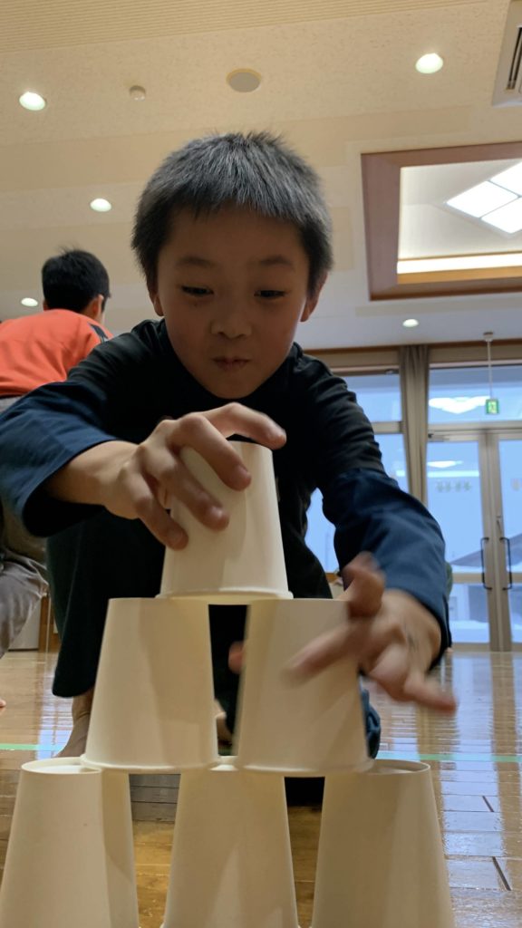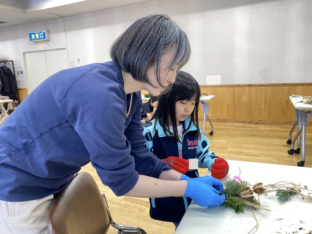 紐をきつく結ぶのがコツですが、低学年は少し難しそうなのでスタッフがサポートしました。