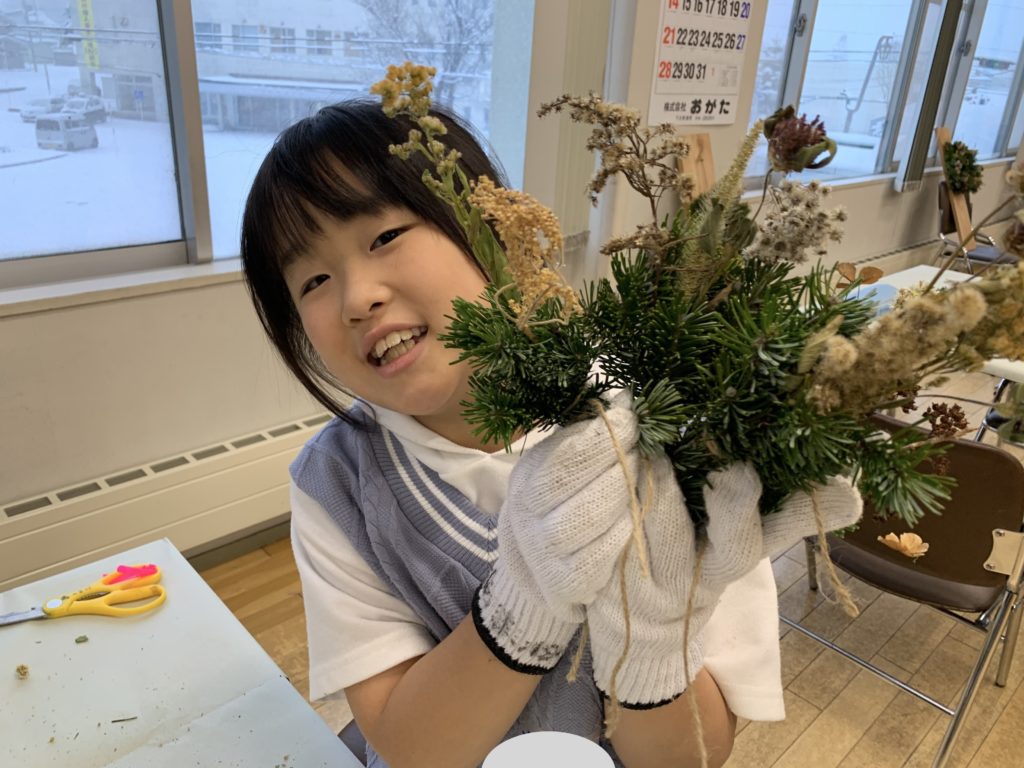 講師にフローリストのちかさんをお迎えし、フレッシュなトドマツと野草のドライフラワーで100%下川のリースを作ります。