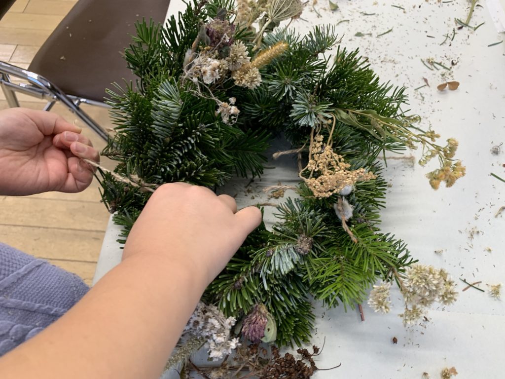 12月といえばクリスマス、今年もクリスマスリースづくりに挑戦しました。