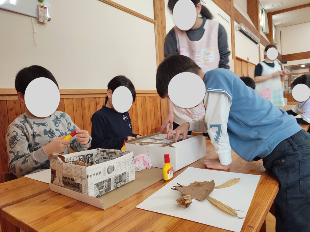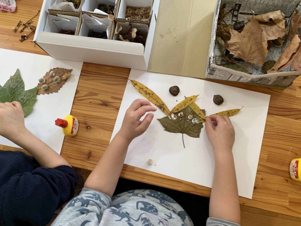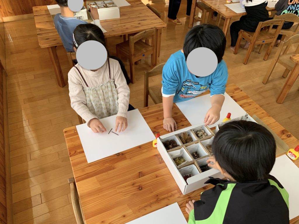 動物などのモチーフを作る子、素材を並べていく子など、個性が出ますね。