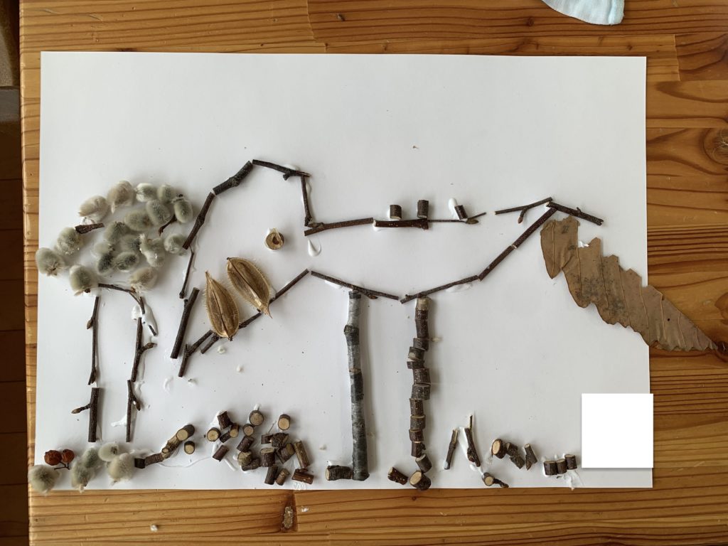 今回は年長クラスだけのプログラム「森の素材アート」です。