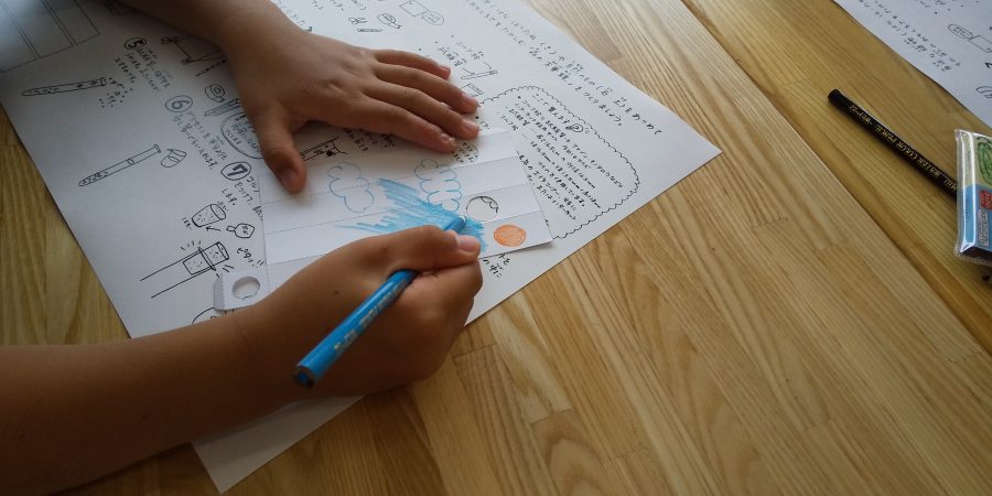 最初に万華鏡の箱に絵を描きます。